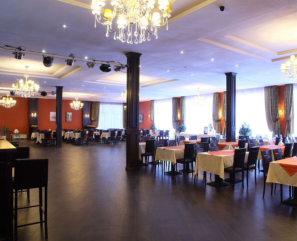 Современный ресторан на 200 мест и с лобби баром. Для отдыхающих предлагается меню для взрослых и детей, в которое включены блюда из мяса, рыбы, птицы, овощей, фруктов. Высокое качество блюд обусловлено тем, что их приготовление осуществляется из натуральных, экологически чистых продуктов.
